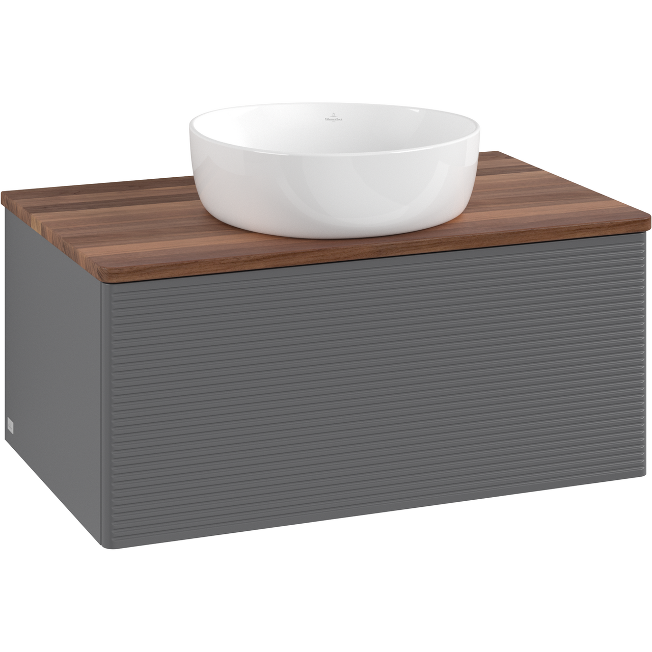 V&b antao servantskap 1 skuff rillet 800x360x500 u/kranhull m/lys antrasitt/valnøtt