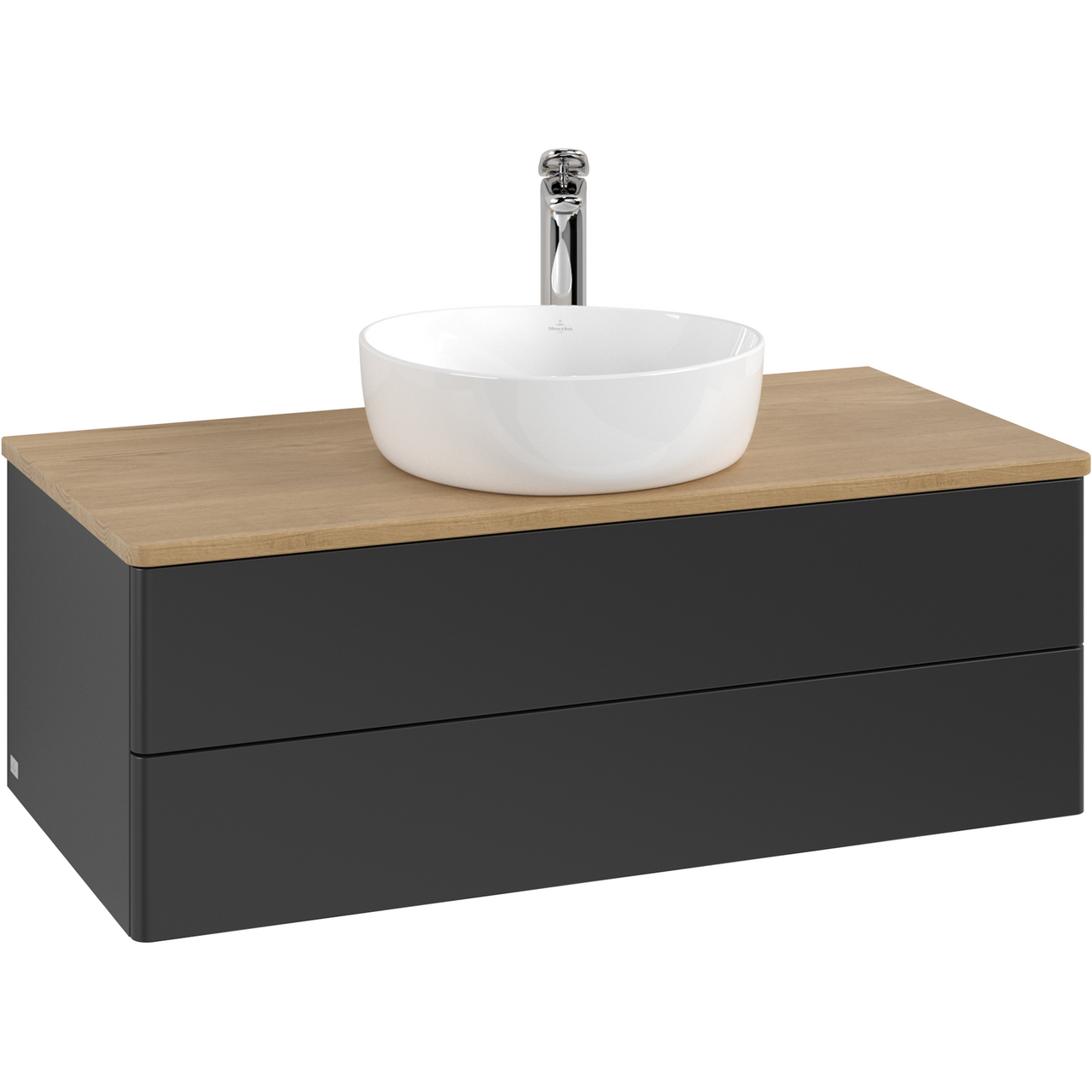 V&b antao servantskap 2 skuffer glatt 1000x360x500 m/kranhull m/lys matt sort/eik