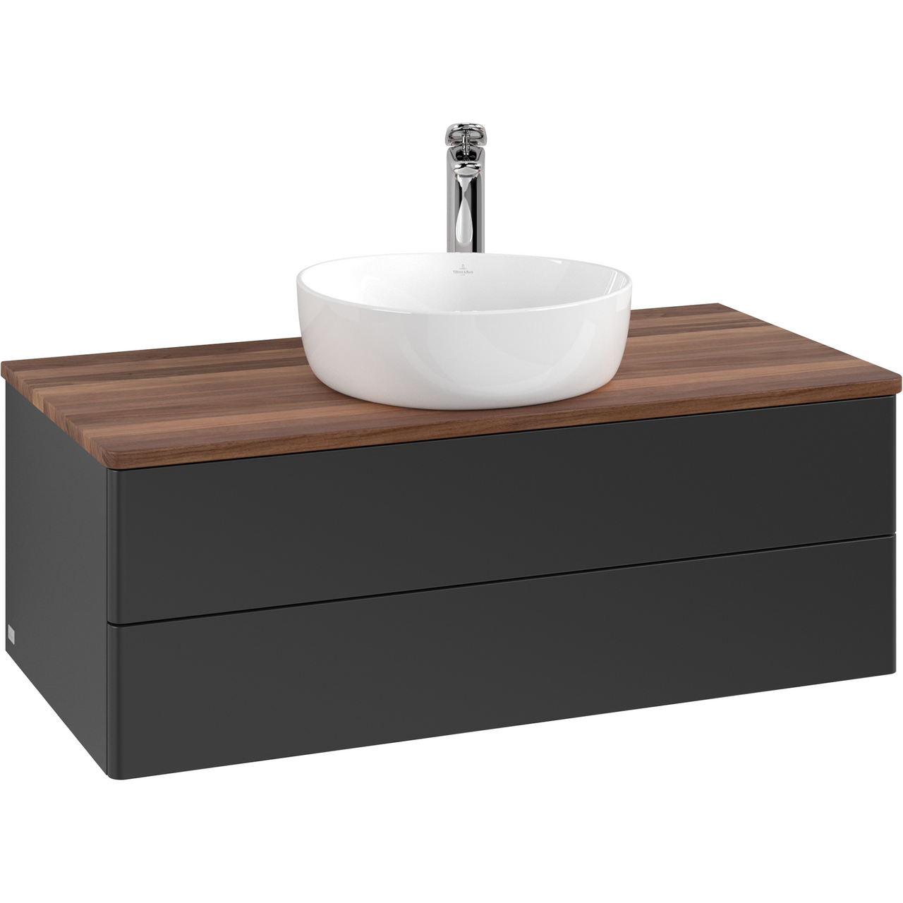 V&b antao servantskap 2 skuffer glatt 1000x360x500 m/kranhull m/lys matt sort/valnøtt