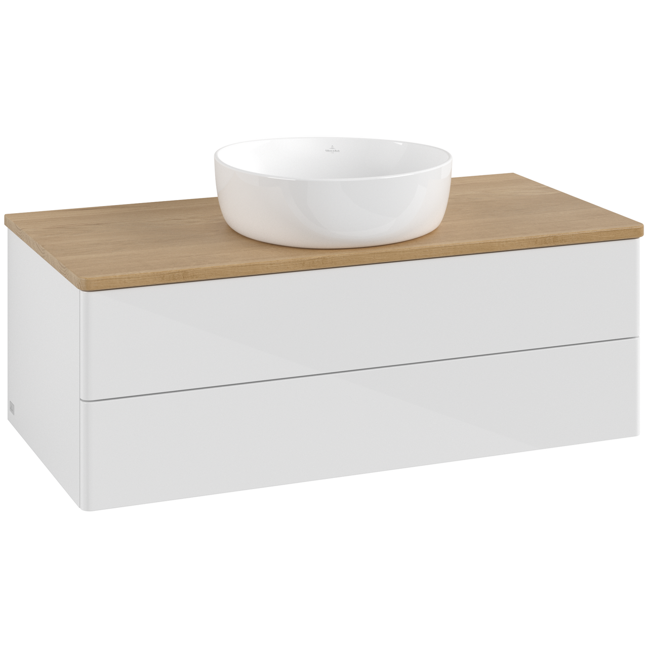 V&b antao servantskap 2 skuffer glatt 1000x360x500 u/kranhull hvit/eik