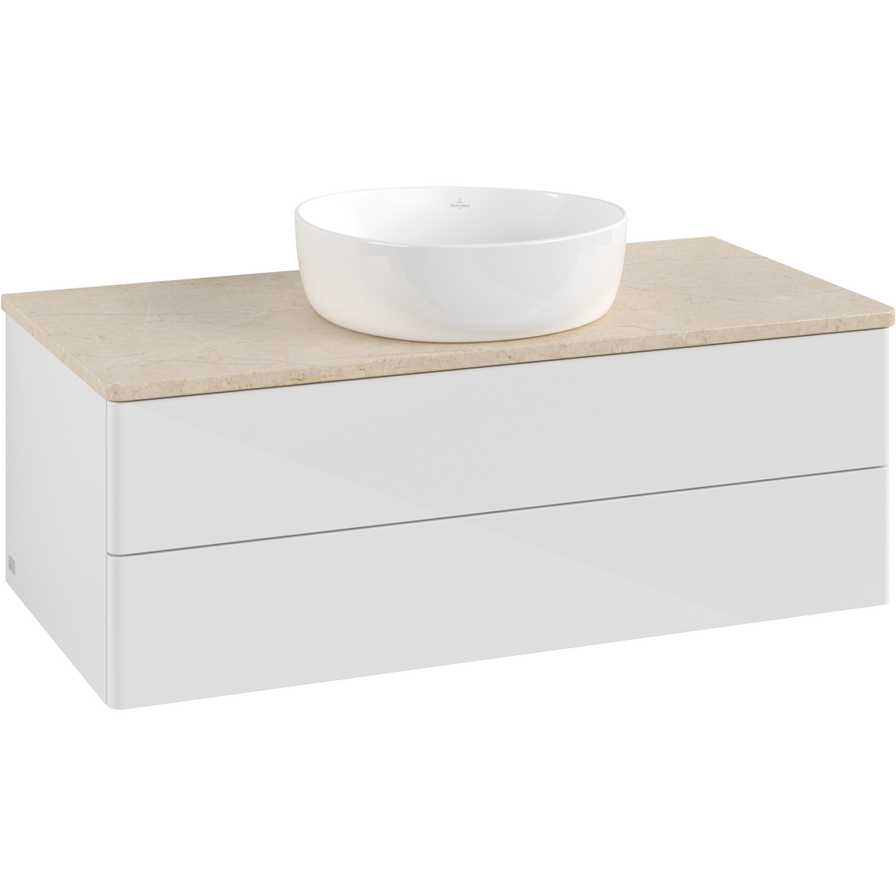 V&B ANTAO SERVANTSKAP 2 SKUFFER GLATT 1000X360X500 U/KRANHULL M/LYS HVIT/CRÉME