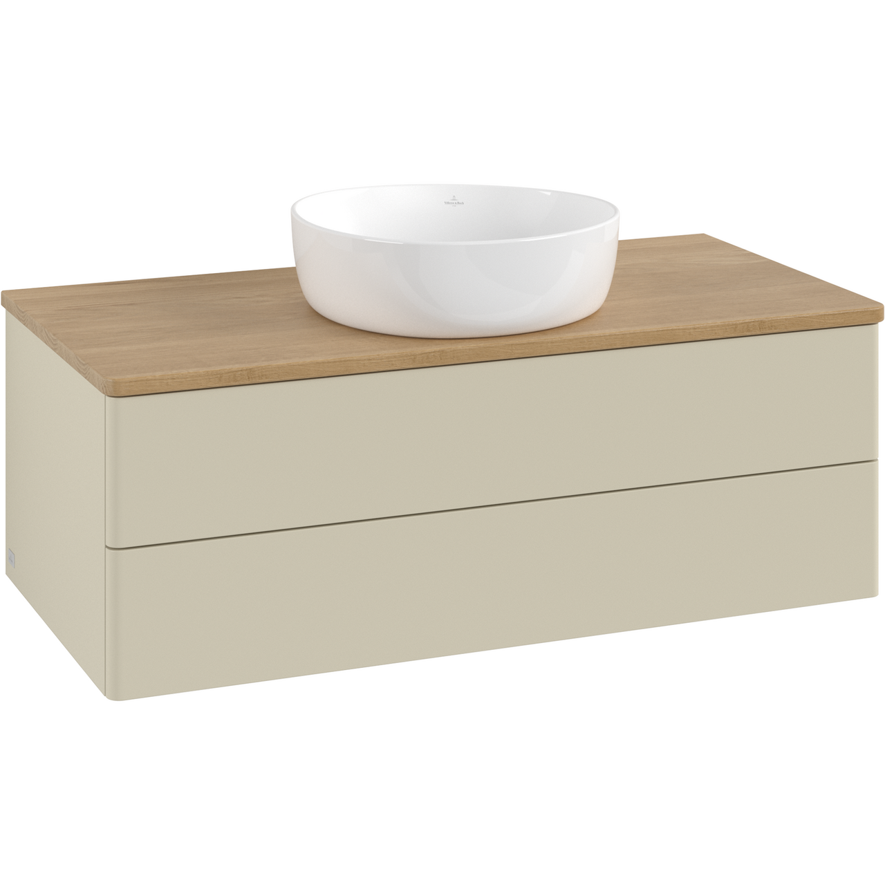 V&b antao servantskap 2 skuffer glatt 1000x360x500 u/kranhull m/lys silkegrå/eik