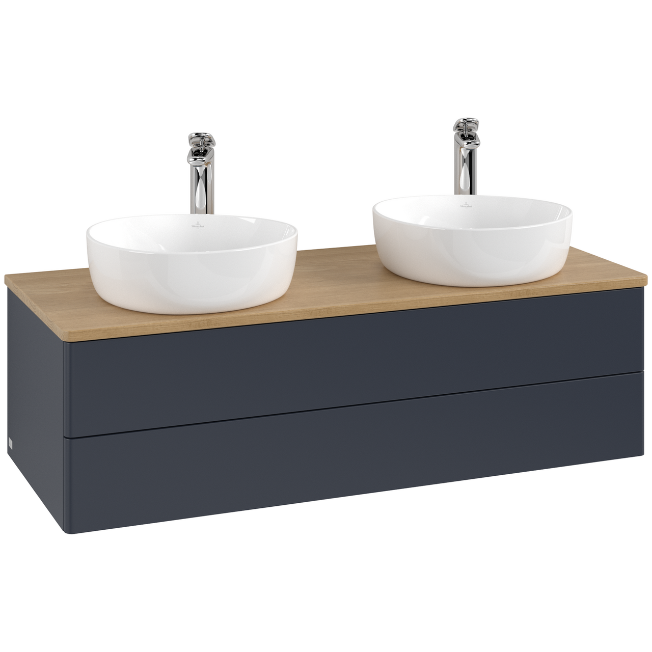 V&b antao servantskap 2 skuffer glatt 1200x360x500 for 2 serv. m/kranhull blå/eik