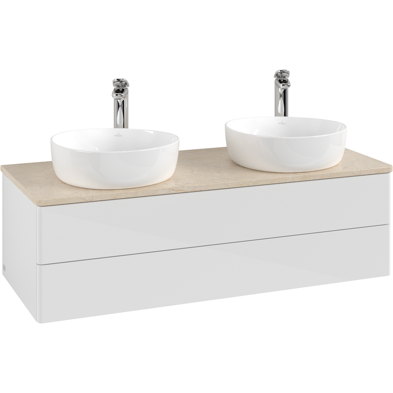 V&b antao servantskap 2 skuffer glatt 1200x360x500 for 2 serv. m/kranhull m/lys hvit/créme