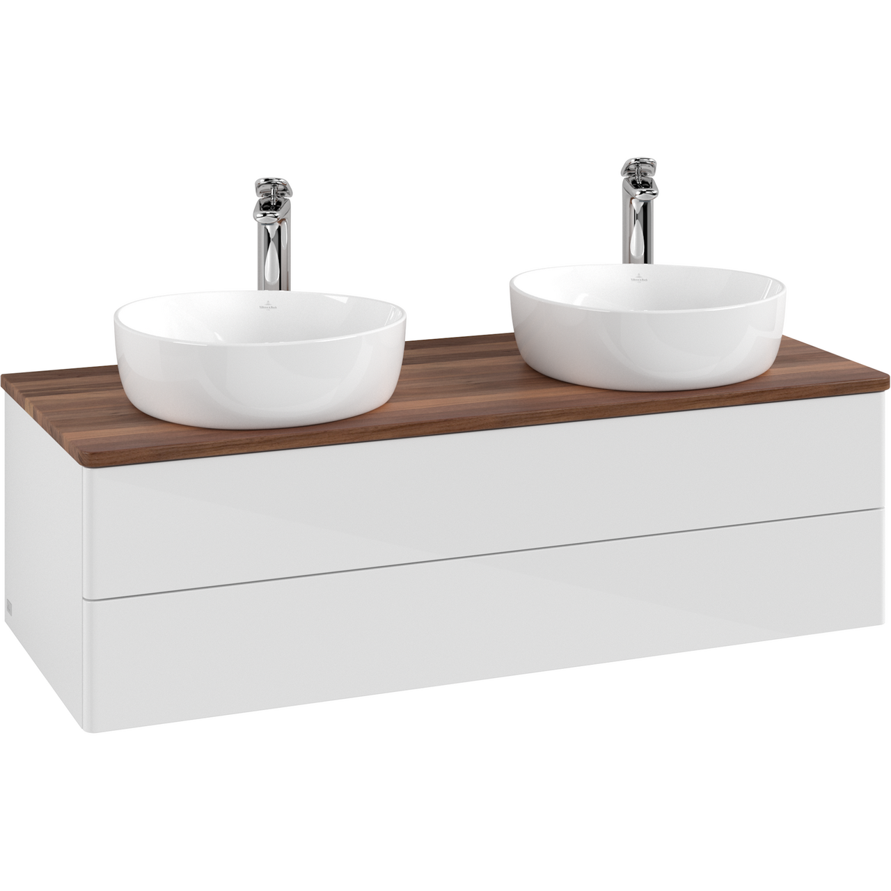 V&b antao servantskap 2 skuffer glatt 1200x360x500 for 2 serv. m/kranhull m/lys hvit/valnøtt