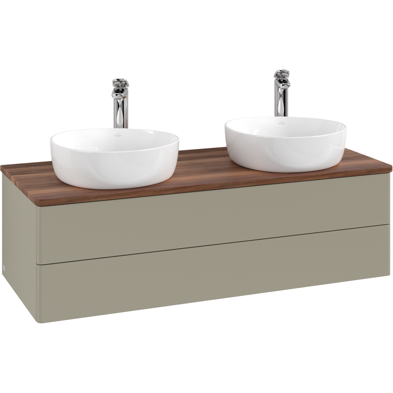 V&b antao servantskap 2 skuffer glatt 1200x360x500 for 2 serv. m/kranhull m/lys stengrå/valnøtt