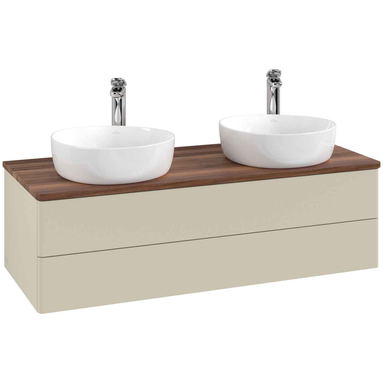V&b antao servantskap 2 skuffer glatt 1200x360x500 for 2 serv. m/kranhull silkegrå/valnøtt