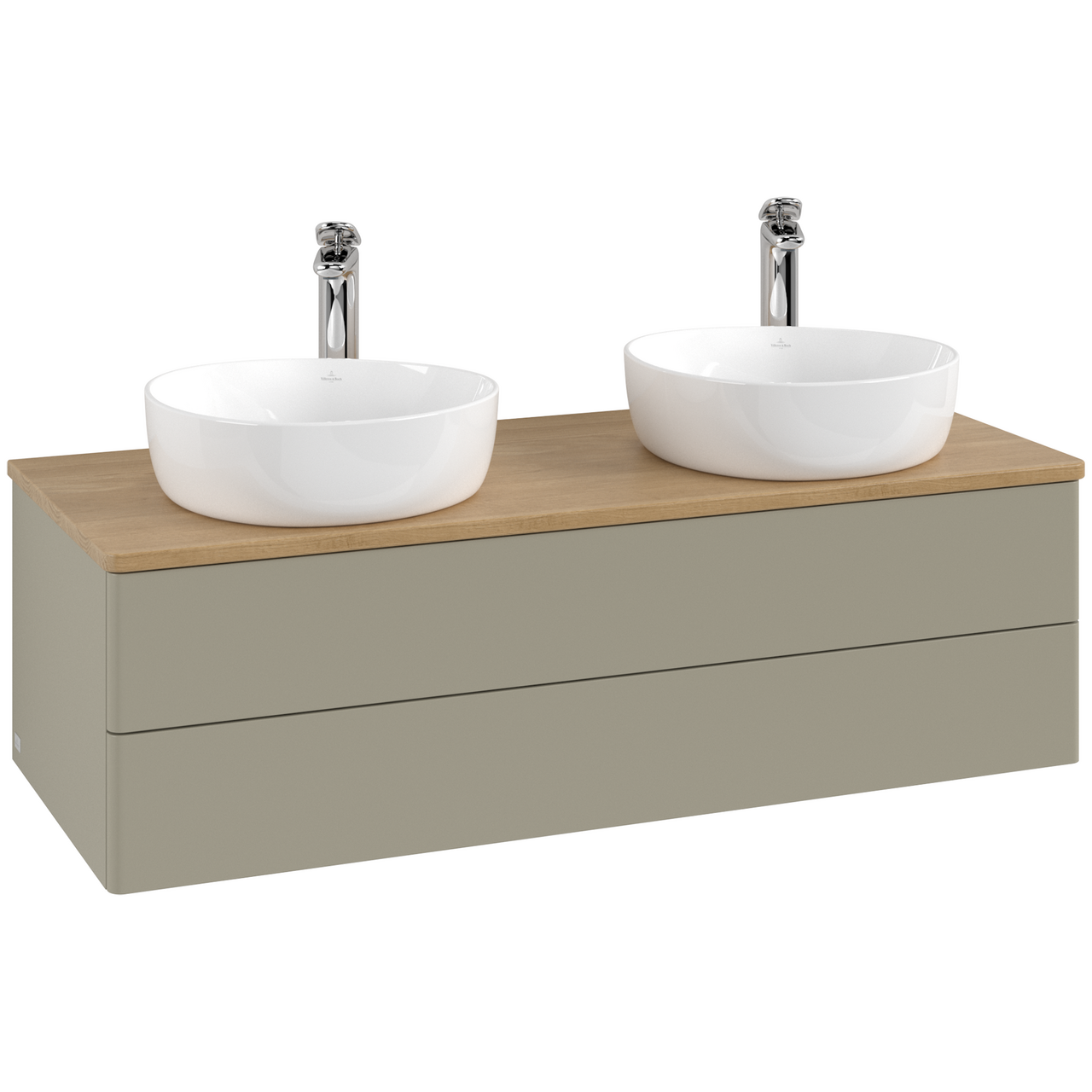 V&b antao servantskap 2 skuffer glatt 1200x360x500 for 2 serv. m/kranhull stengrå/eik
