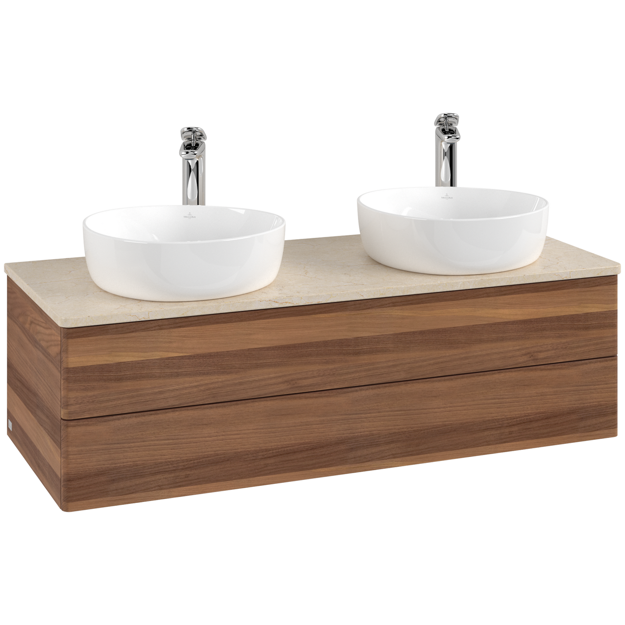 V&b antao servantskap 2 skuffer glatt 1200x360x500 for 2 serv. m/kranhull valnøtt/créme