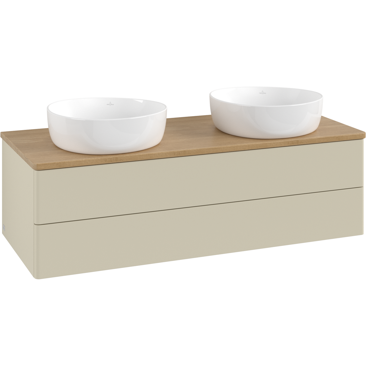 V&b antao servantskap 2 skuffer glatt 1200x360x500 for 2 serv. u/kranhull m/lys silkegrå/eik