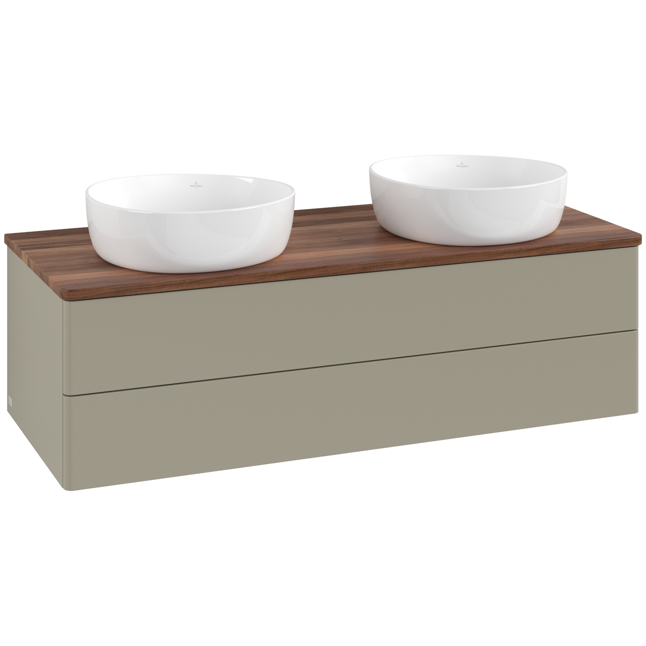 V&b antao servantskap 2 skuffer glatt 1200x360x500 for 2 serv. u/kranhull stengrå/valnøtt
