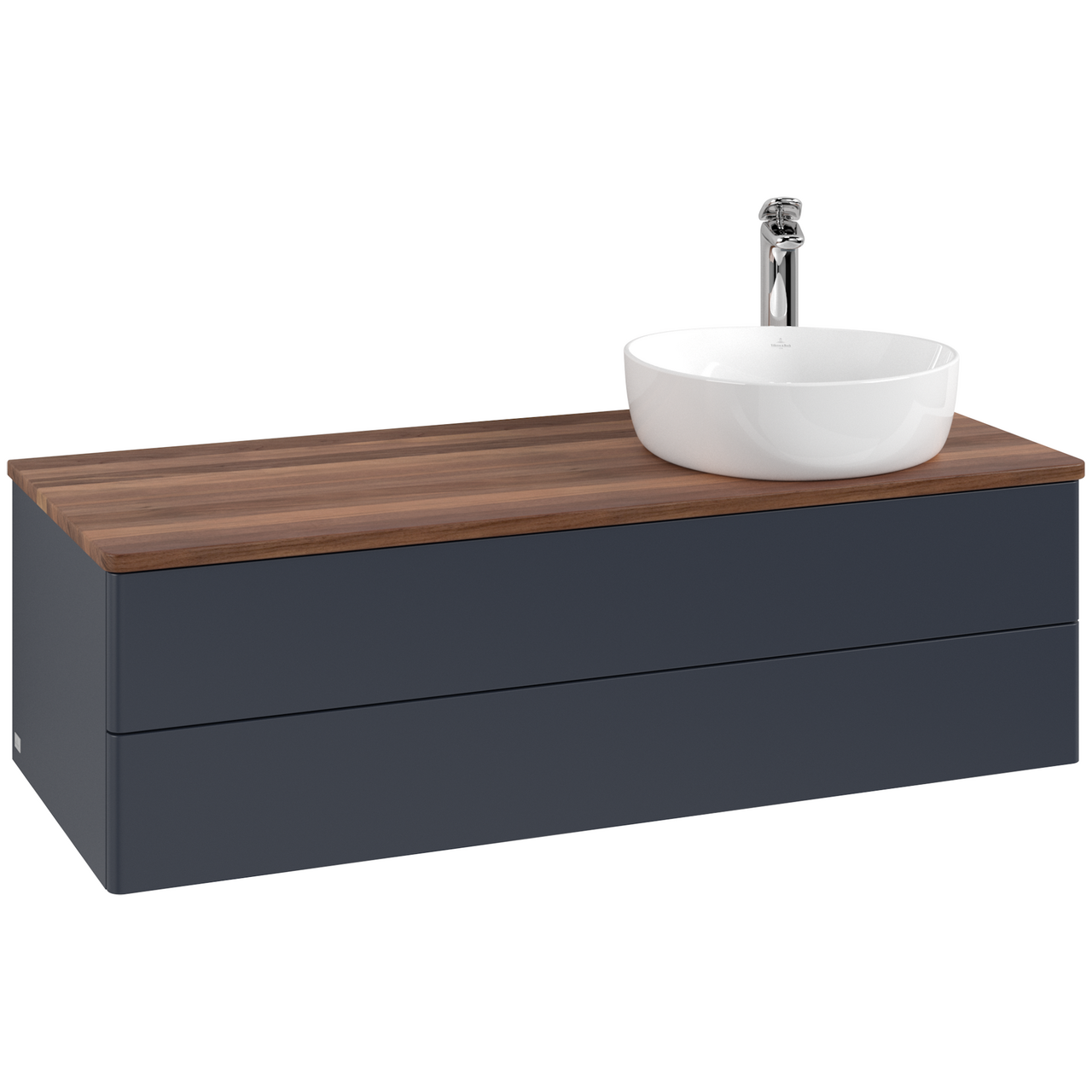 V&b antao servantskap 2 skuffer glatt 1200x360x500 høyre m/kranhull blå/valnøtt