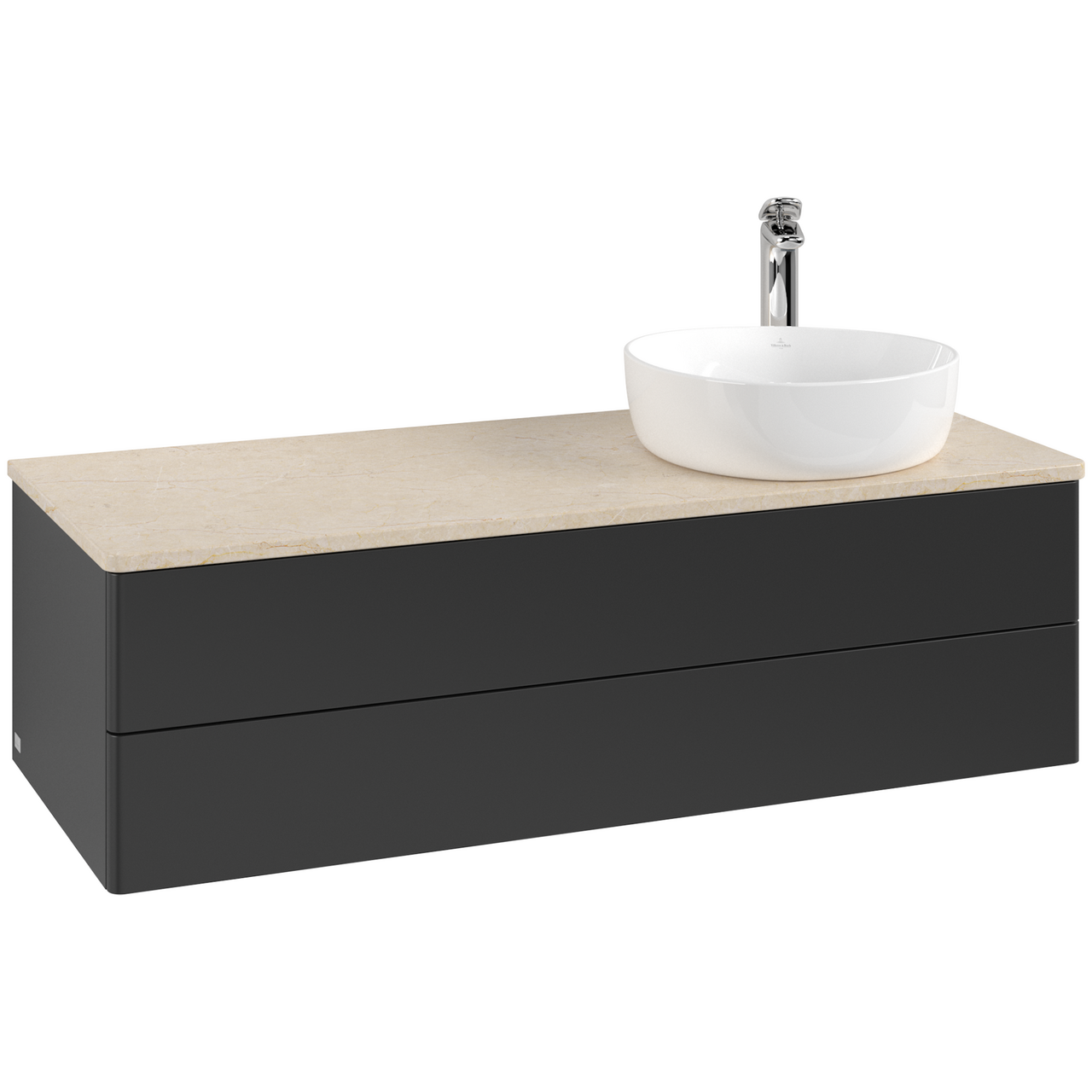 V&b antao servantskap 2 skuffer glatt 1200x360x500 høyre m/kranhull matt sort/créme