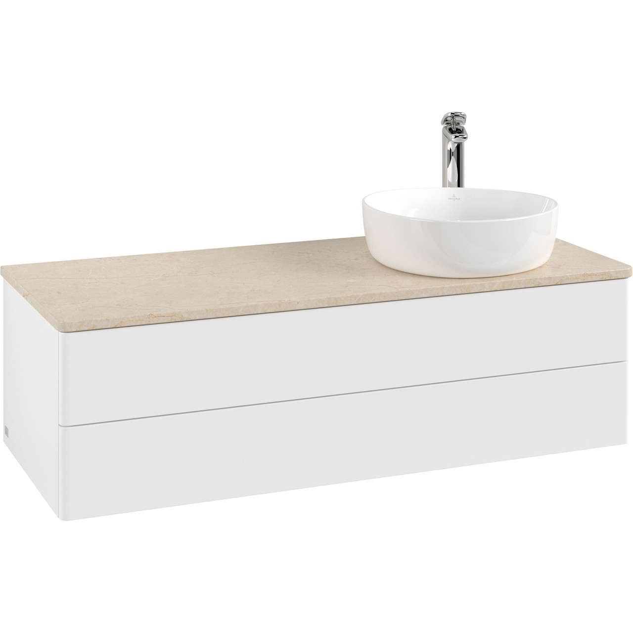 V&b antao servantskap 2 skuffer glatt 1200x360x500 høyre m/kranhull m/lys matt hvit/créme