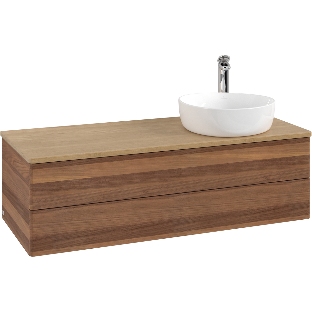 V&b antao servantskap 2 skuffer glatt 1200x360x500 høyre m/kranhull m/lys valnøtt/eik