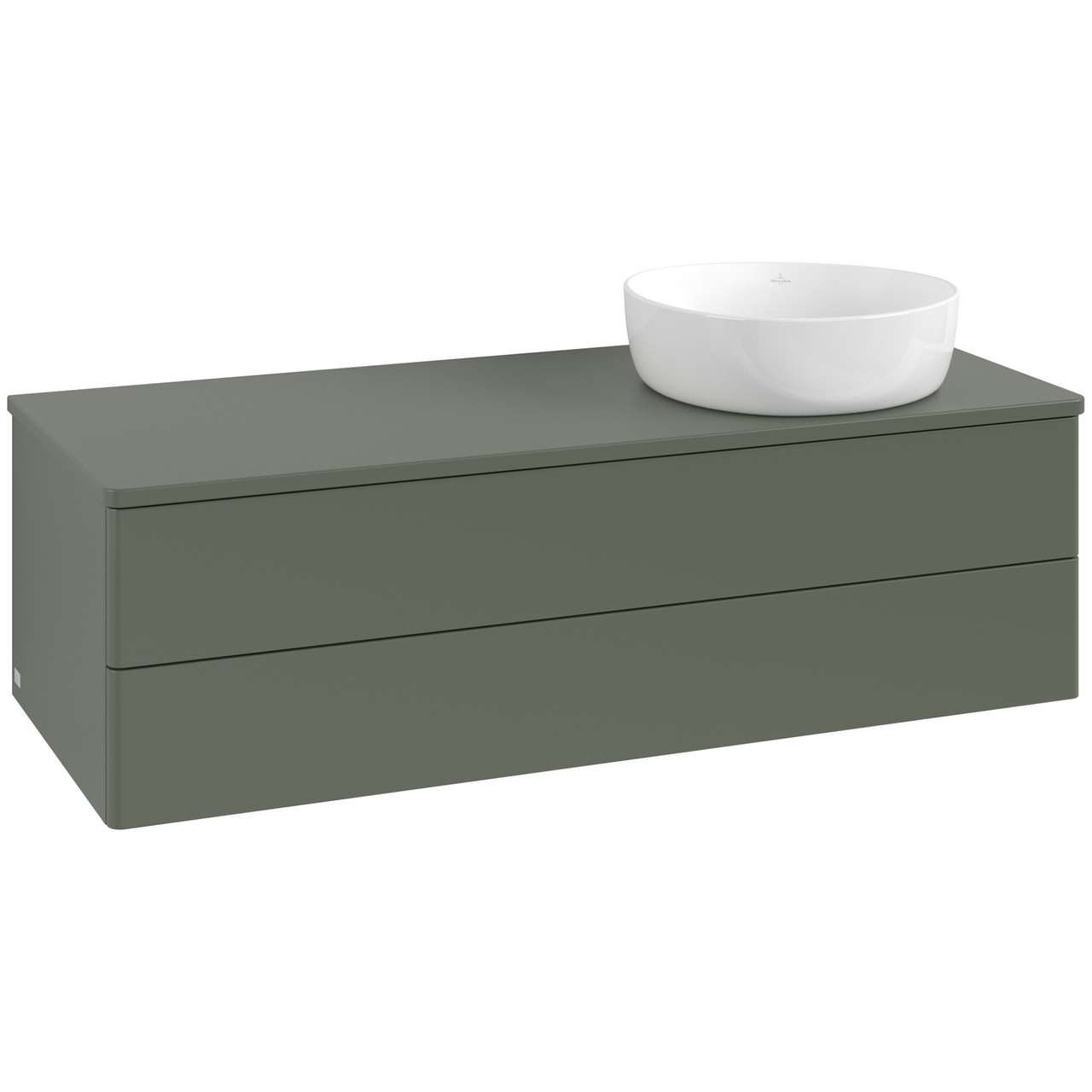 V&b antao servantskap 2 skuffer glatt 1200x360x500 høyre u/kranhull grønn