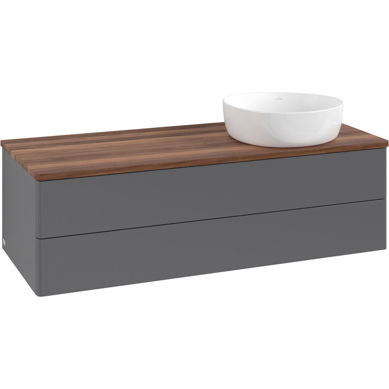 V&b antao servantskap 2 skuffer glatt 1200x360x500 høyre u/kranhull m/lys antrasitt/valnøtt