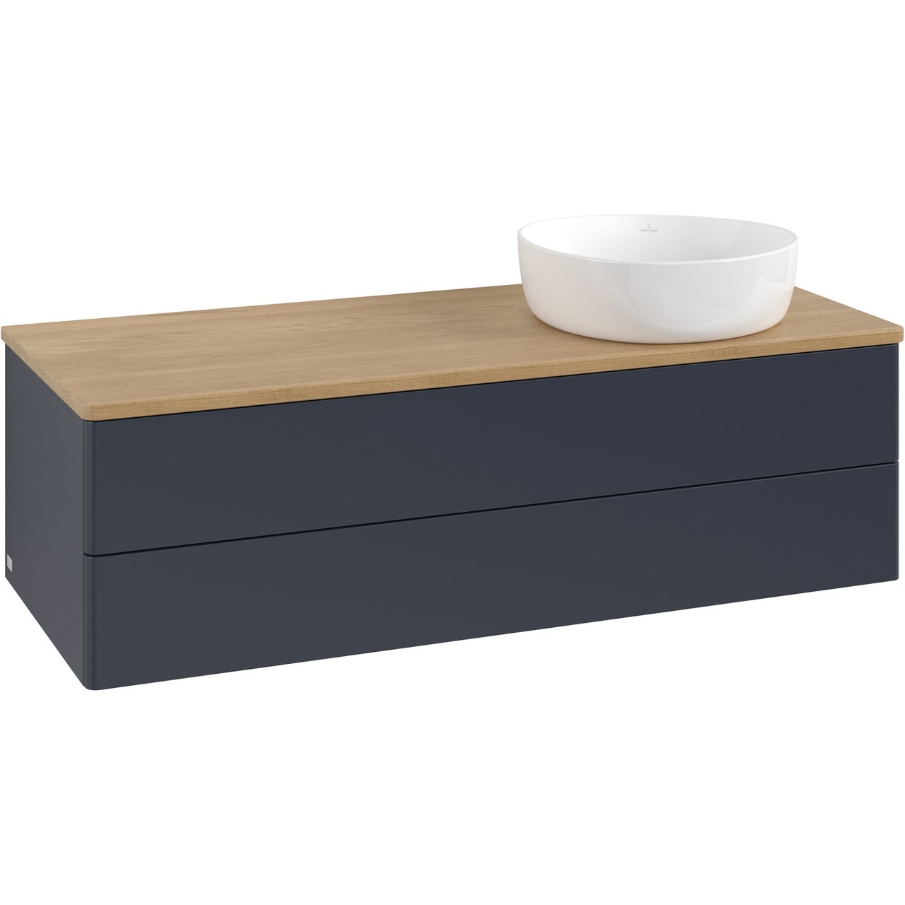 V&b antao servantskap 2 skuffer glatt 1200x360x500 høyre u/kranhull m/lys blå/eik