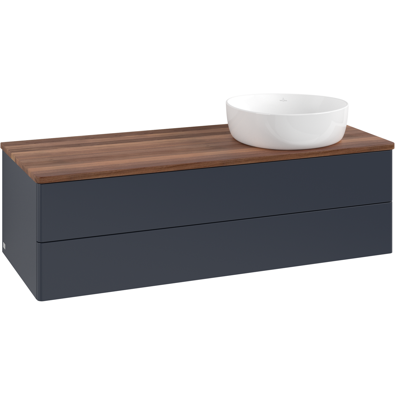V&b antao servantskap 2 skuffer glatt 1200x360x500 høyre u/kranhull m/lys blå/valnøtt