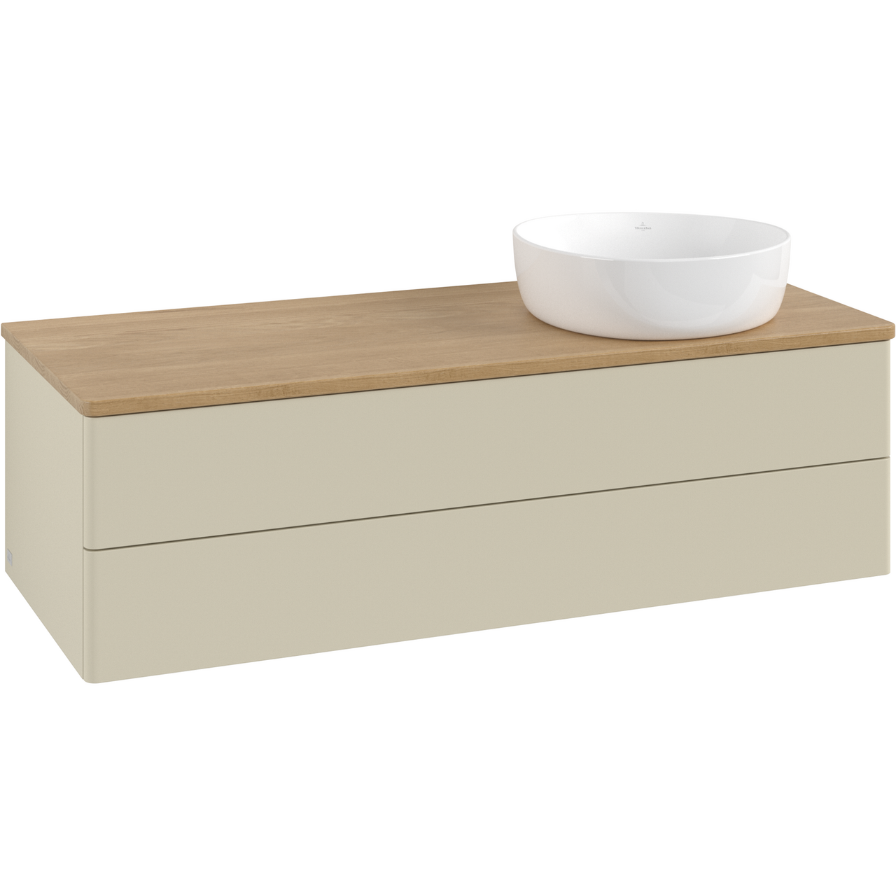 V&b antao servantskap 2 skuffer glatt 1200x360x500 høyre u/kranhull m/lys silkegrå/eik