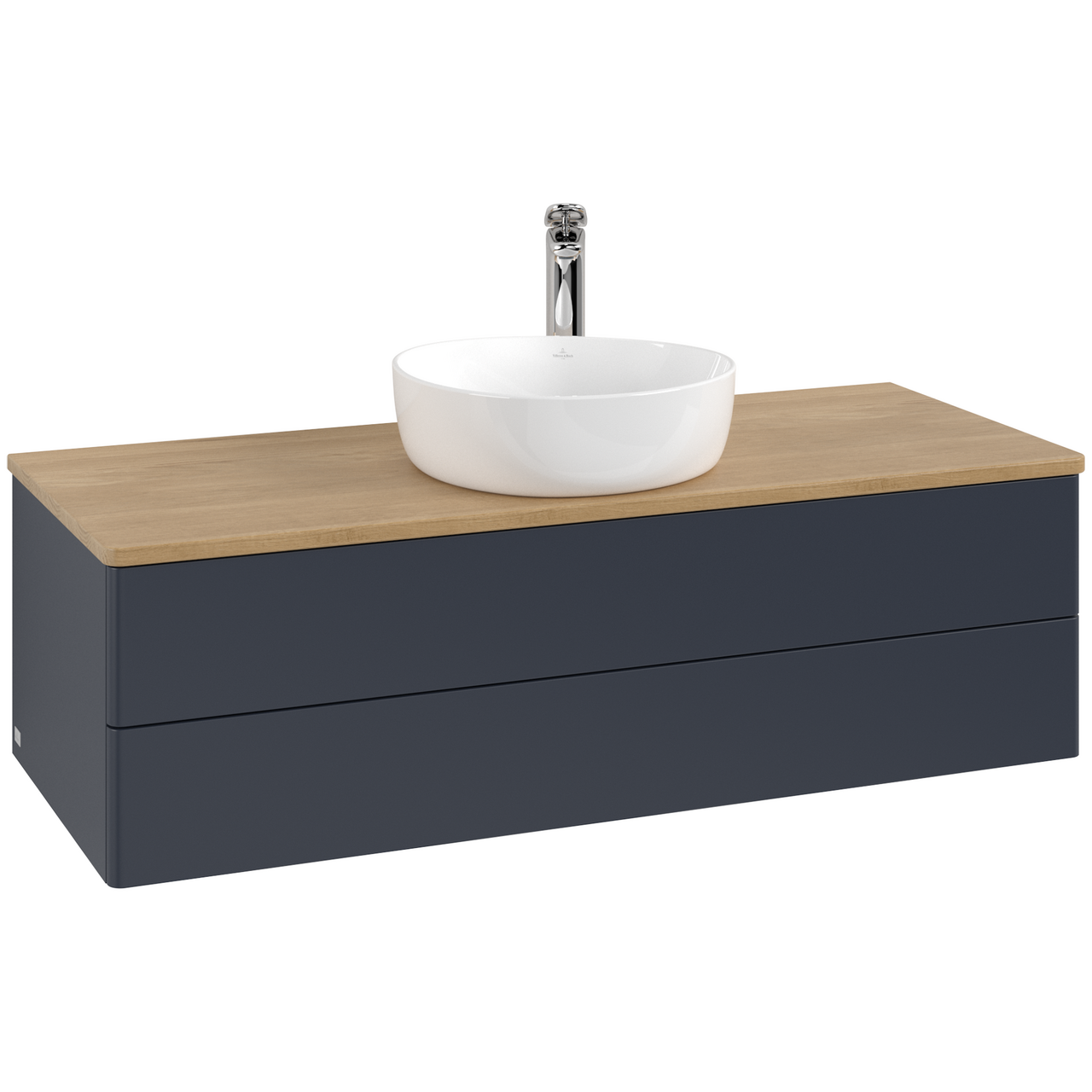 V&b antao servantskap 2 skuffer glatt 1200x360x500 m/kranhull blå/eik