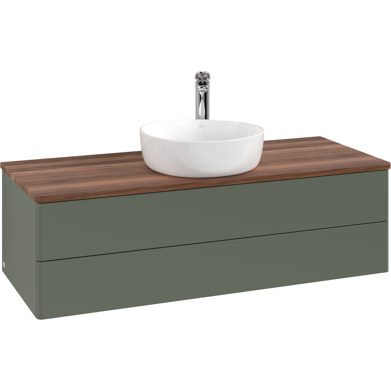 V&b antao servantskap 2 skuffer glatt 1200x360x500 m/kranhull m/lys grønn/valnøtt