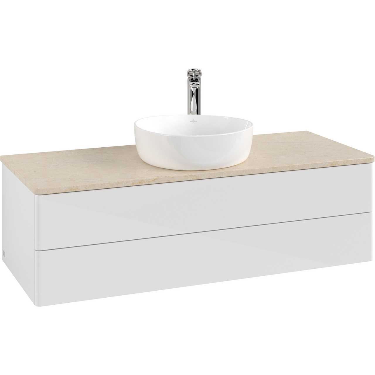 V&b antao servantskap 2 skuffer glatt 1200x360x500 m/kranhull m/lys hvit/créme