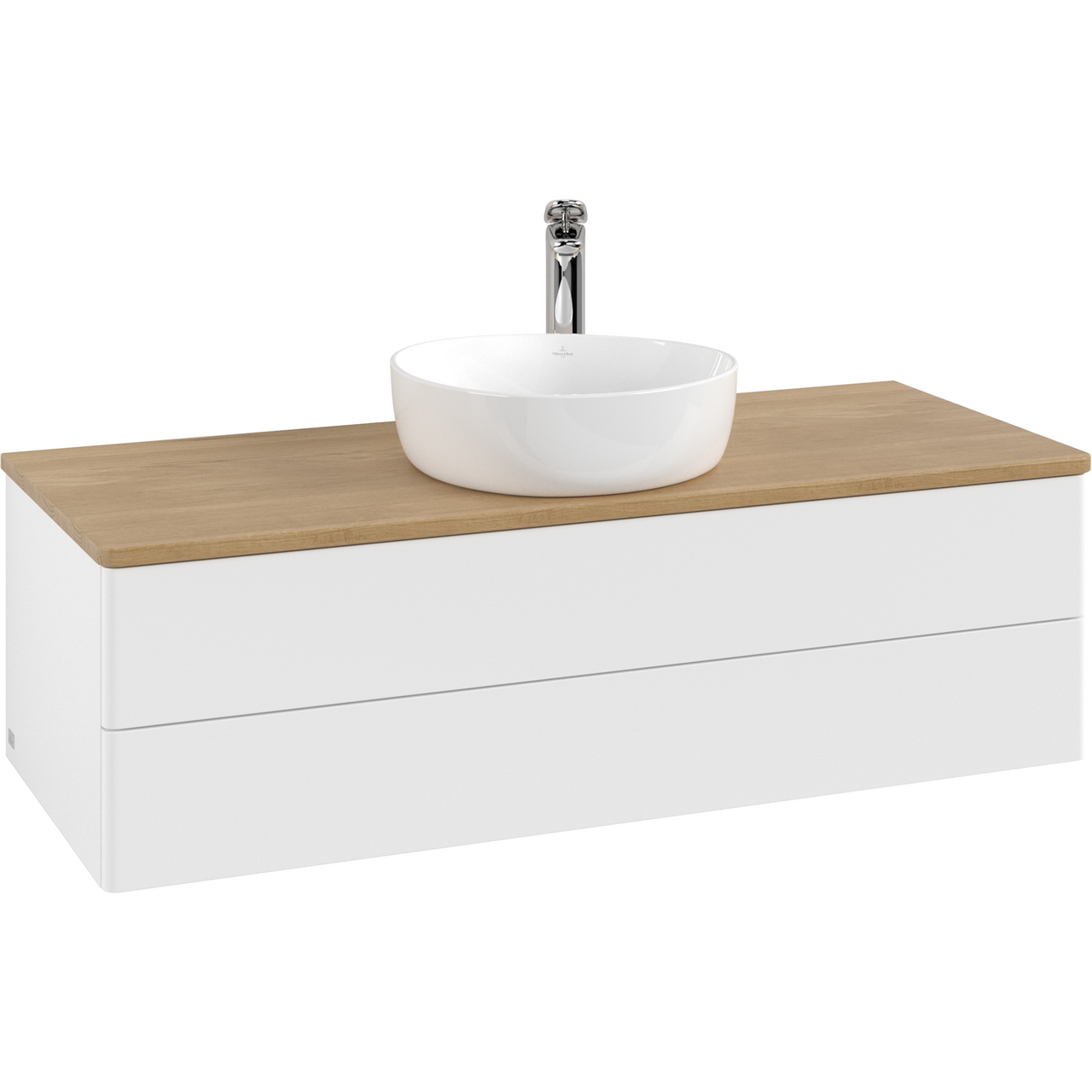 V&b antao servantskap 2 skuffer glatt 1200x360x500 m/kranhull m/lys matt hvit/eik