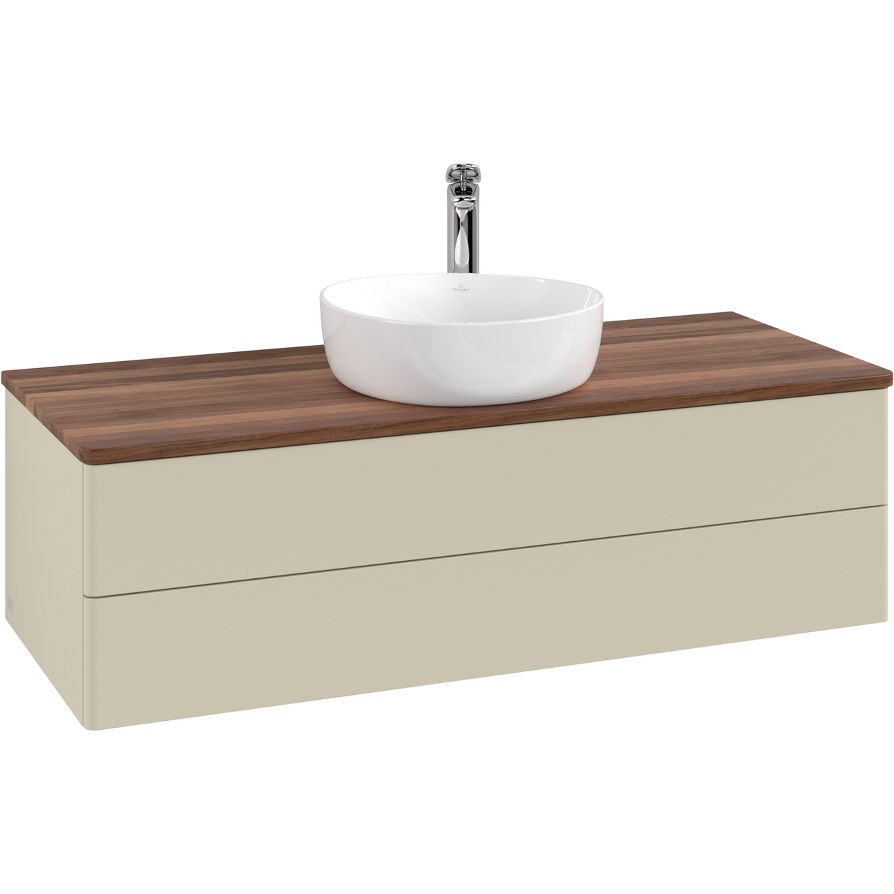 V&b antao servantskap 2 skuffer glatt 1200x360x500 m/kranhull m/lys silkegrå/valnøtt