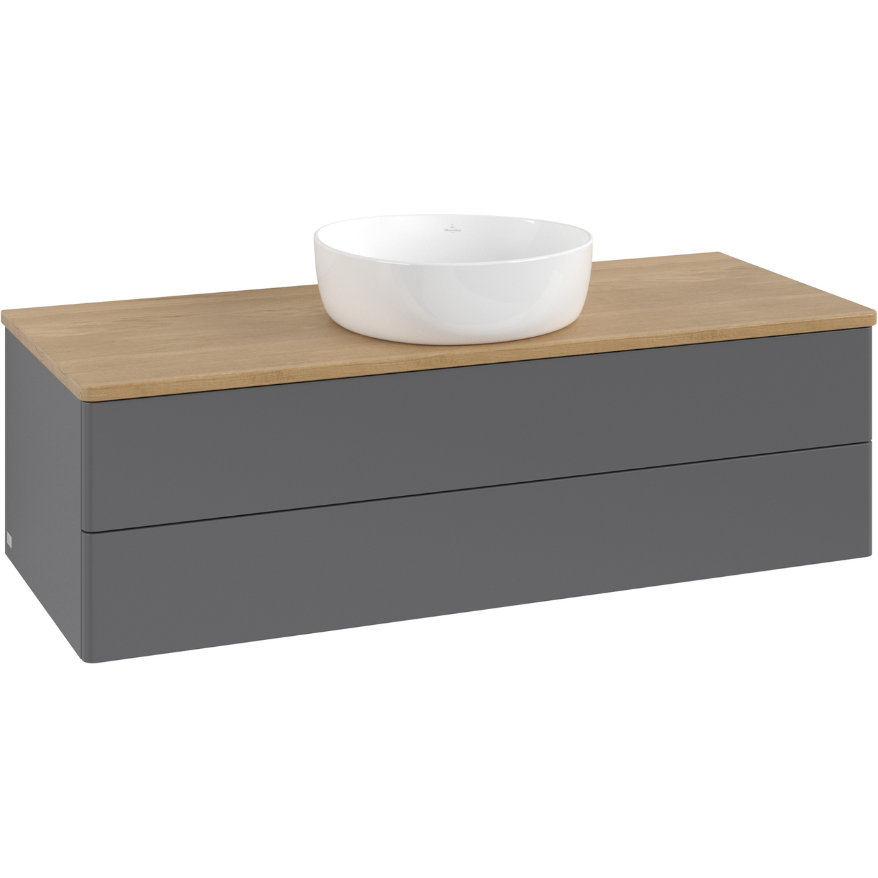 V&B ANTAO SERVANTSKAP 2 SKUFFER GLATT 1200X360X500 U/KRANHULL M/LYS ANTRASITT/EIK