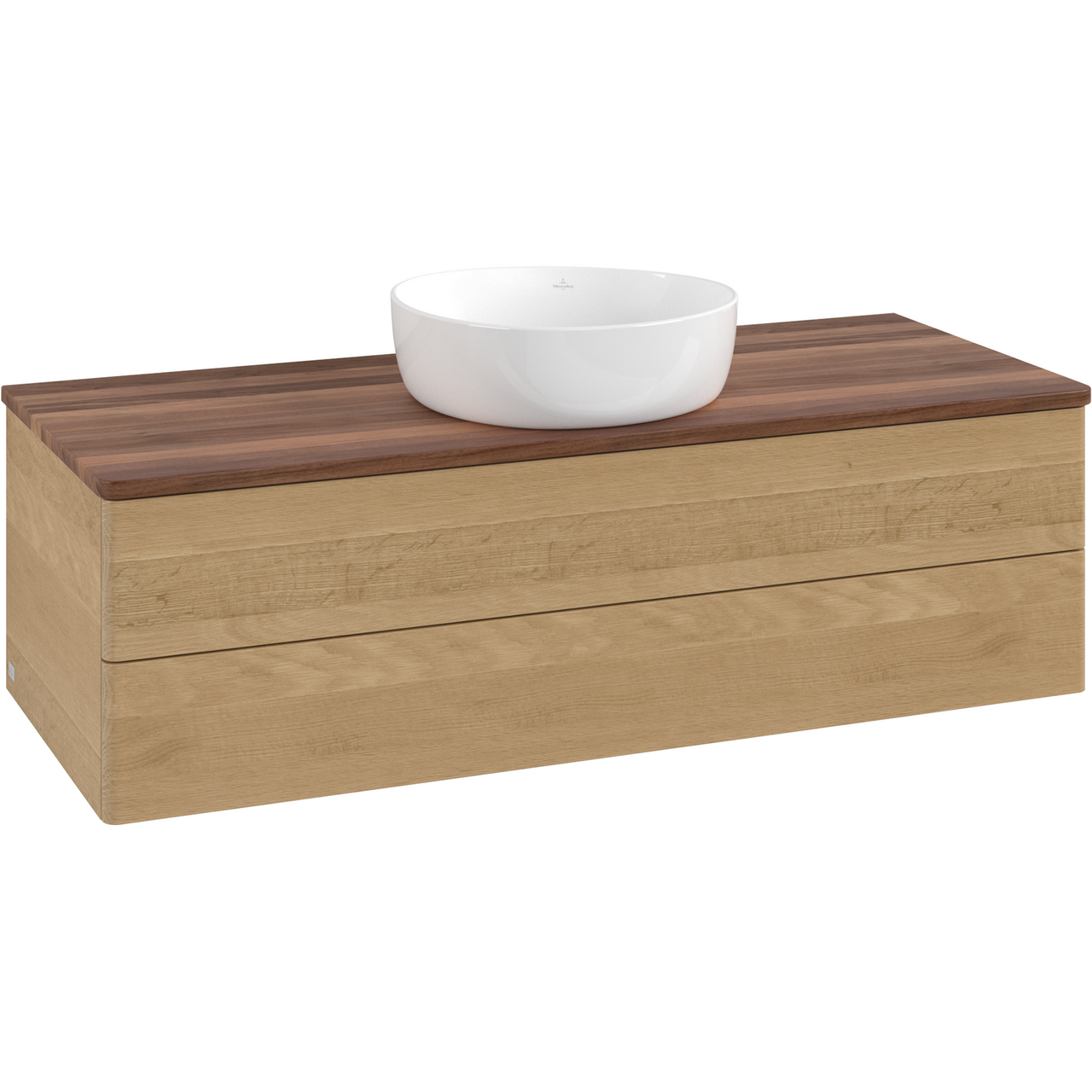 V&b antao servantskap 2 skuffer glatt 1200x360x500 u/kranhull m/lys eik/valnøtt