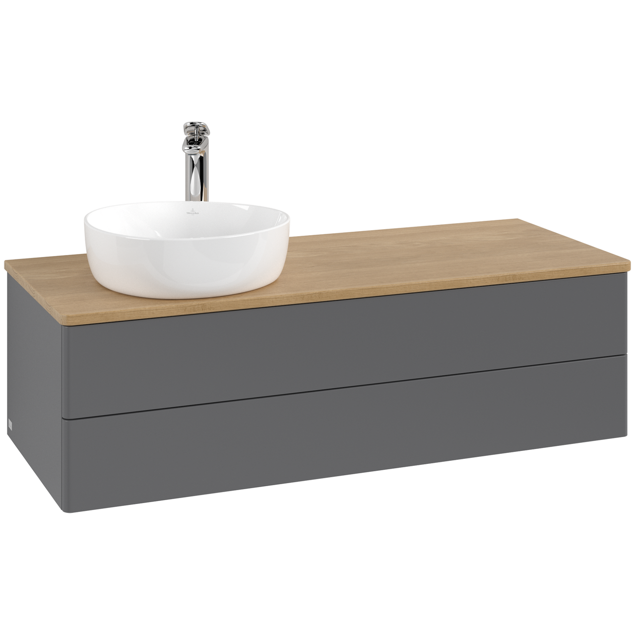 V&b antao servantskap 2 skuffer glatt 1200x360x500 venstre m/kranhull antrasitt/eik