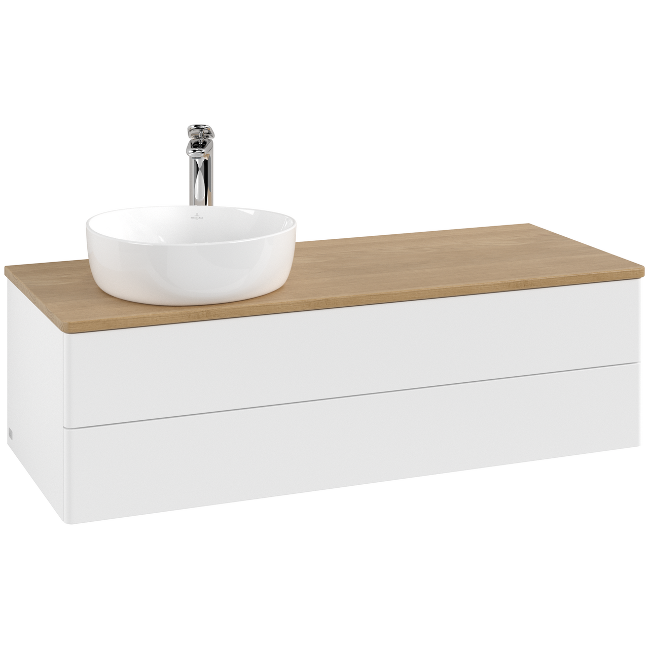V&b antao servantskap 2 skuffer glatt 1200x360x500 venstre m/kranhull matt hvit/eik