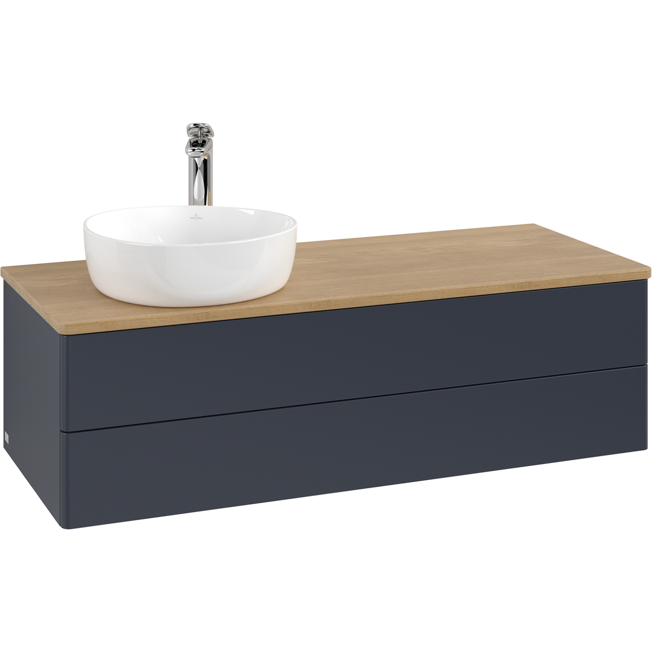 V&b antao servantskap 2 skuffer glatt 1200x360x500 venstre m/kranhull m/lys blå/eik