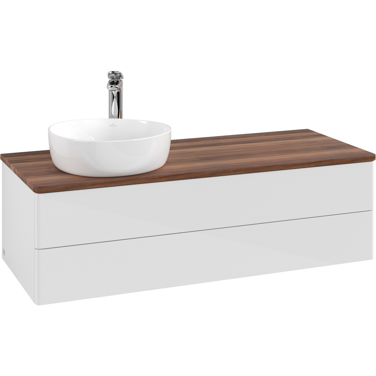 V&b antao servantskap 2 skuffer glatt 1200x360x500 venstre m/kranhull m/lys hvit/valnøtt