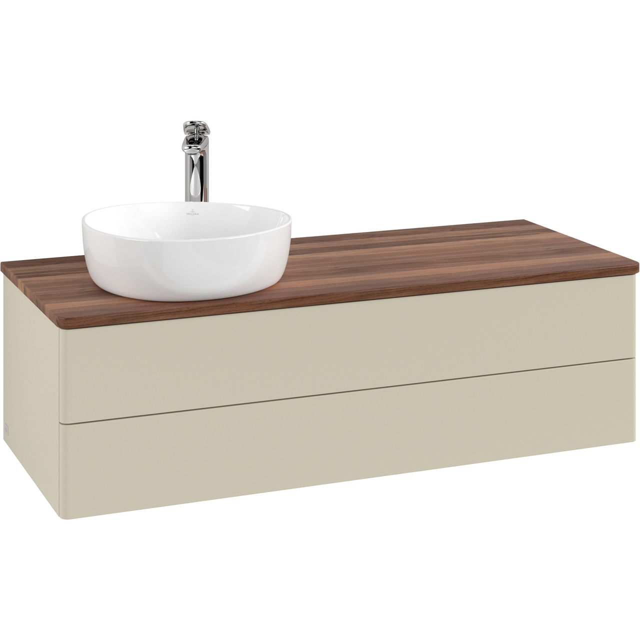 V&b antao servantskap 2 skuffer glatt 1200x360x500 venstre m/kranhull m/lys silkegrå/valnøtt