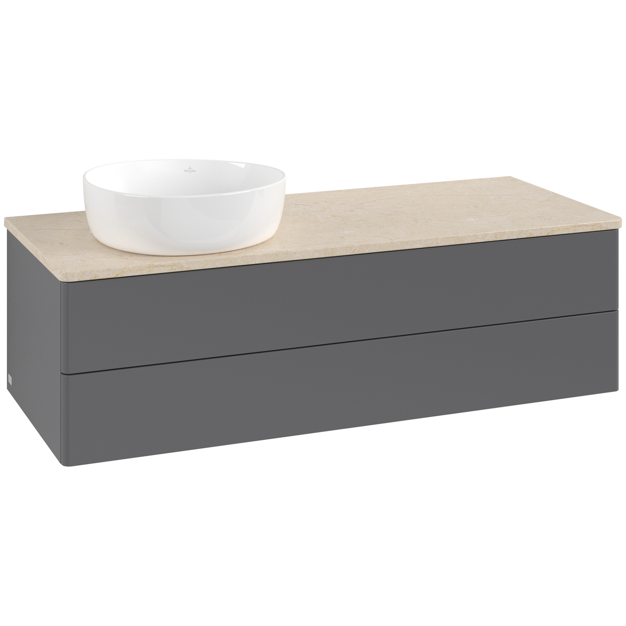 V&B ANTAO SERVANTSKAP 2 SKUFFER GLATT 1200X360X500 VENSTRE U/KRANHULL ANTRASITT/CRÉME