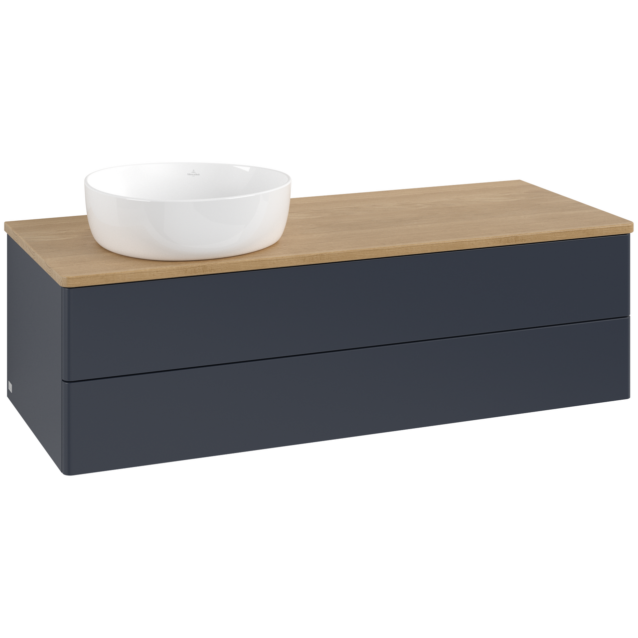 V&b antao servantskap 2 skuffer glatt 1200x360x500 venstre u/kranhull blå/eik