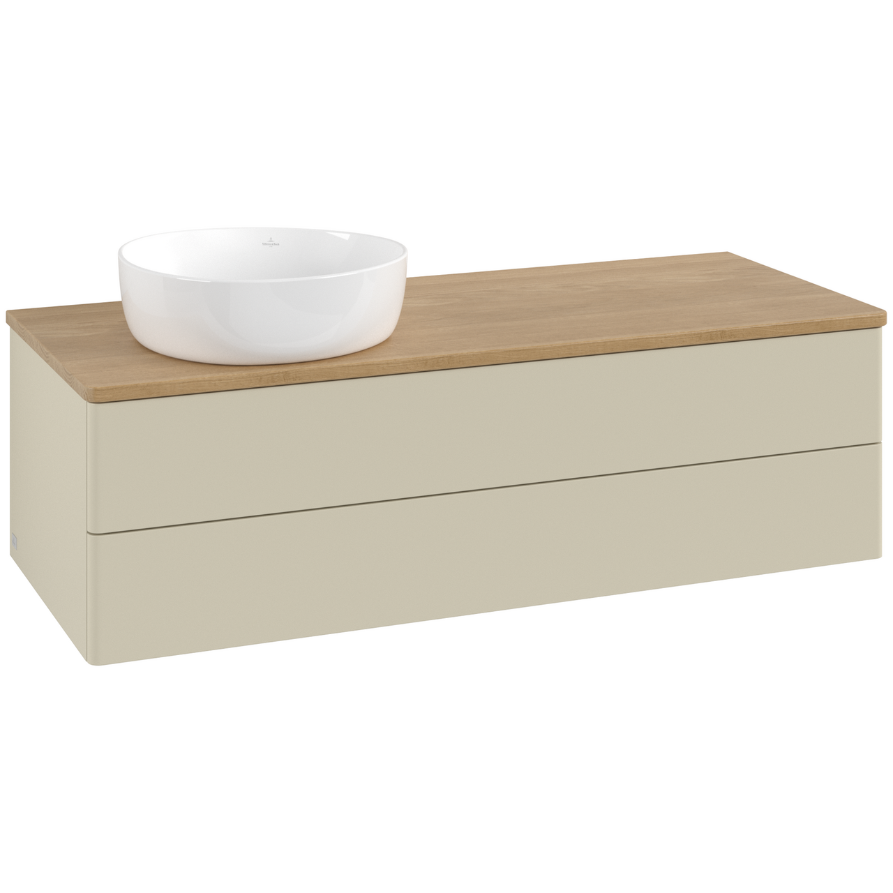 V&b antao servantskap 2 skuffer glatt 1200x360x500 venstre u/kranhull silkegrå/eik