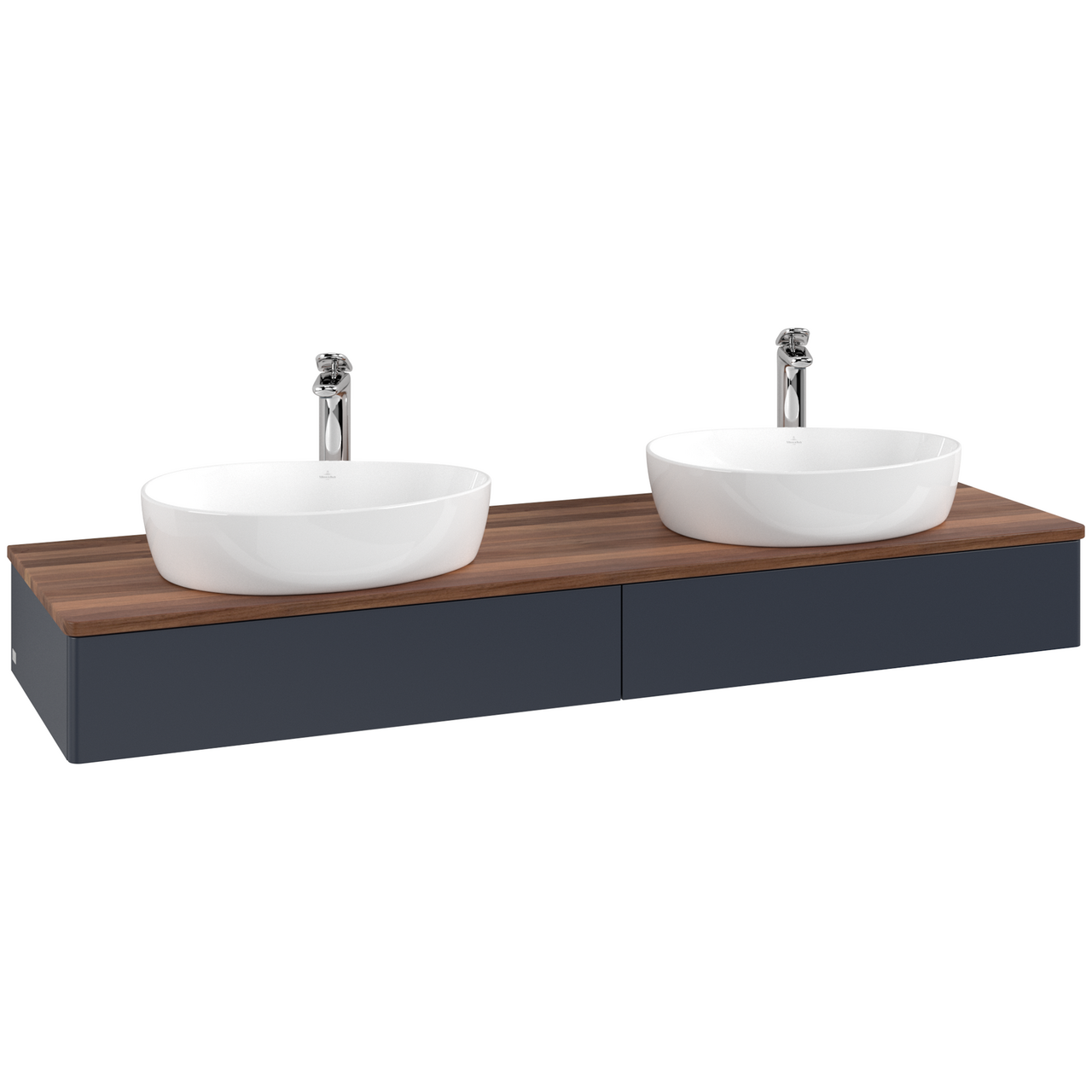 V&b antao servantskap 2 skuffer glatt 1600x190x500 for 2 serv. m/kranhull blå/valnøtt