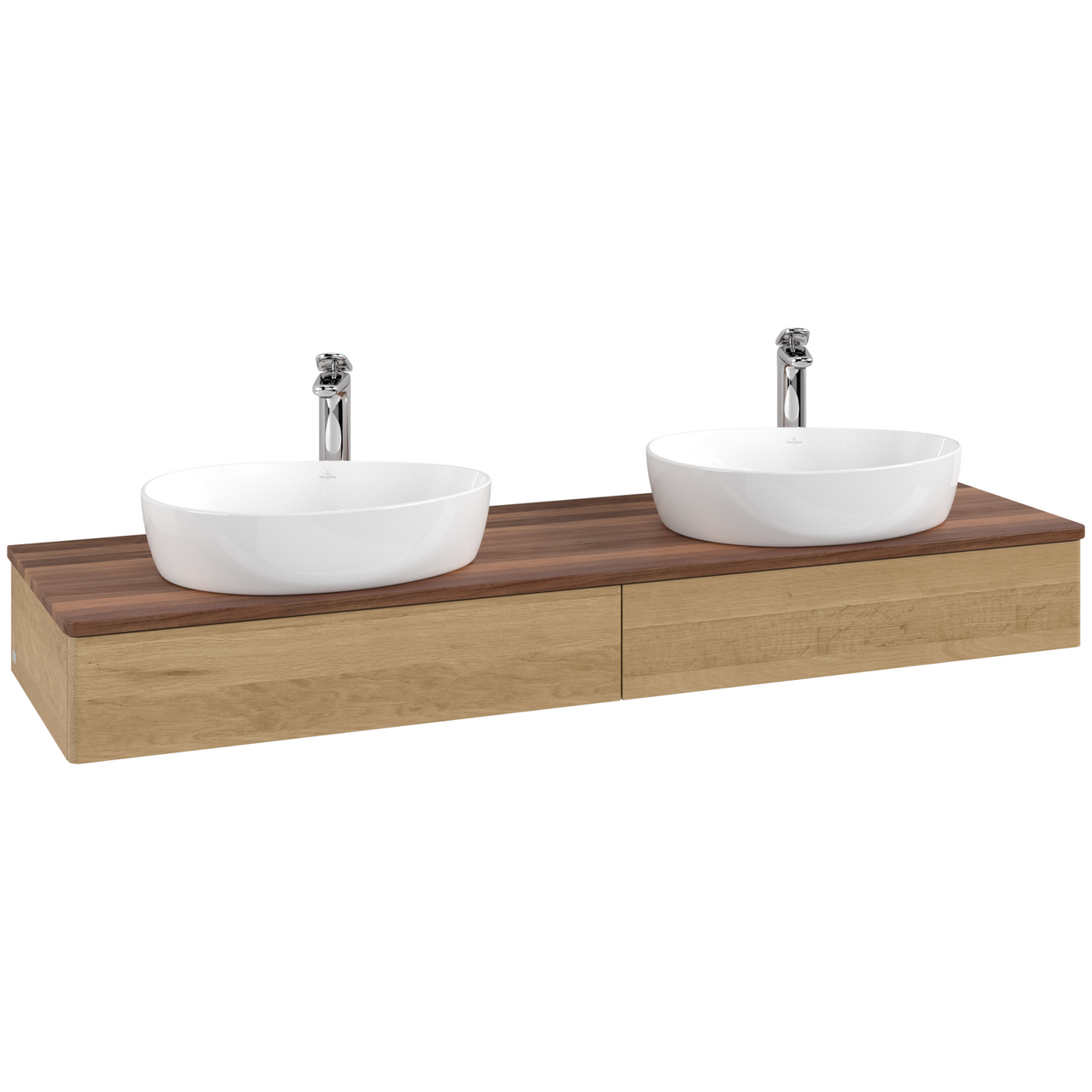 V&b antao servantskap 2 skuffer glatt 1600x190x500 for 2 serv. m/kranhull eik/valnøtt