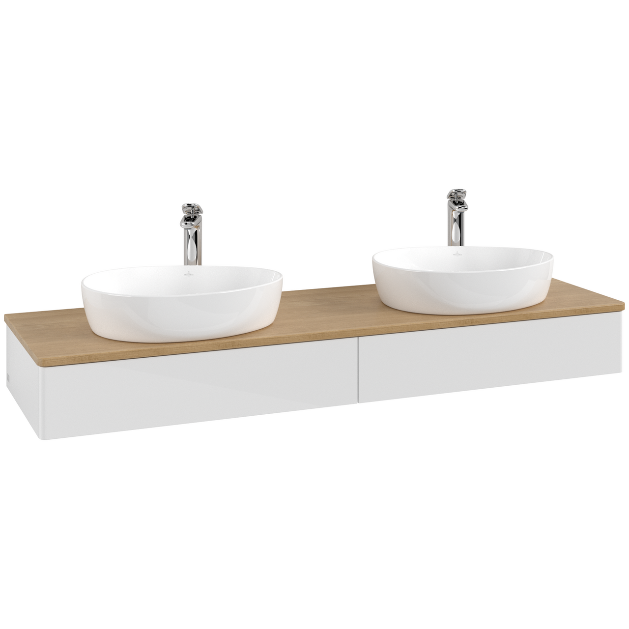 V&b antao servantskap 2 skuffer glatt 1600x190x500 for 2 serv. m/kranhull hvit/eik
