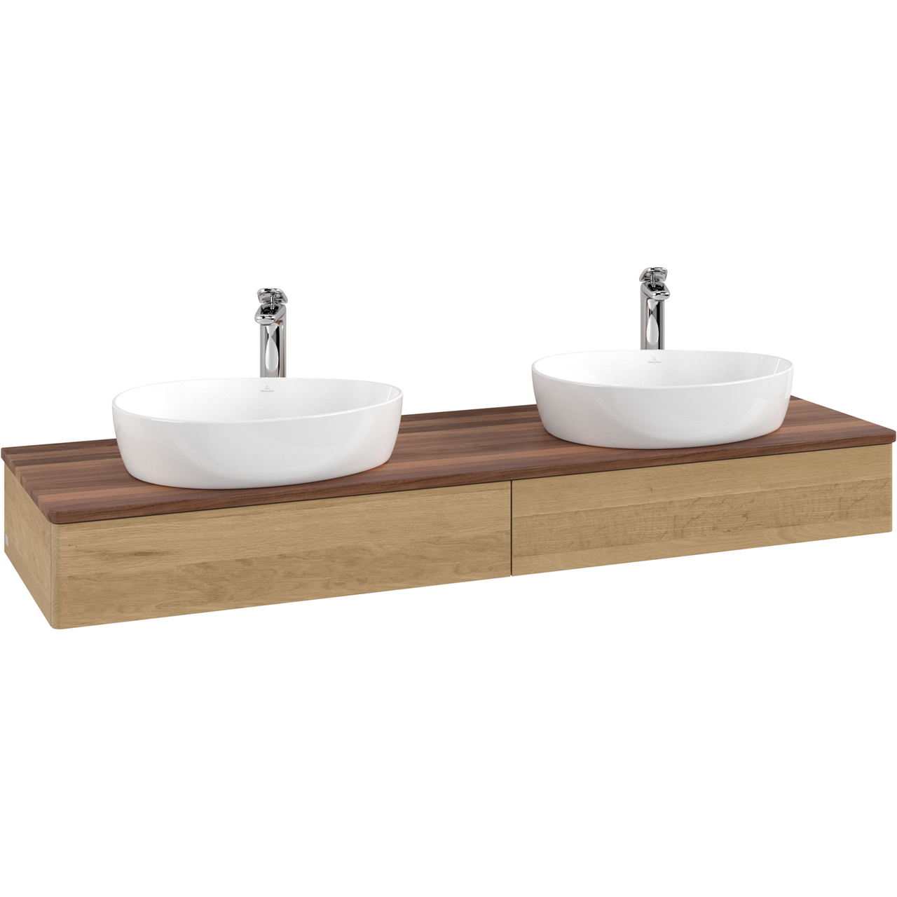 V&b antao servantskap 2 skuffer glatt 1600x190x500 for 2 serv. m/kranhull m/lys eik/valnøtt