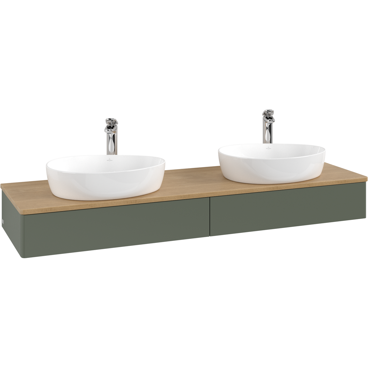 V&b antao servantskap 2 skuffer glatt 1600x190x500 for 2 serv. m/kranhull m/lys grønn/eik