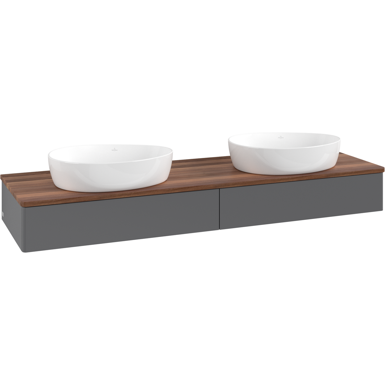 V&b antao servantskap 2 skuffer glatt 1600x190x500 for 2 serv. u/kranhull m/lys antrasitt/valnøtt