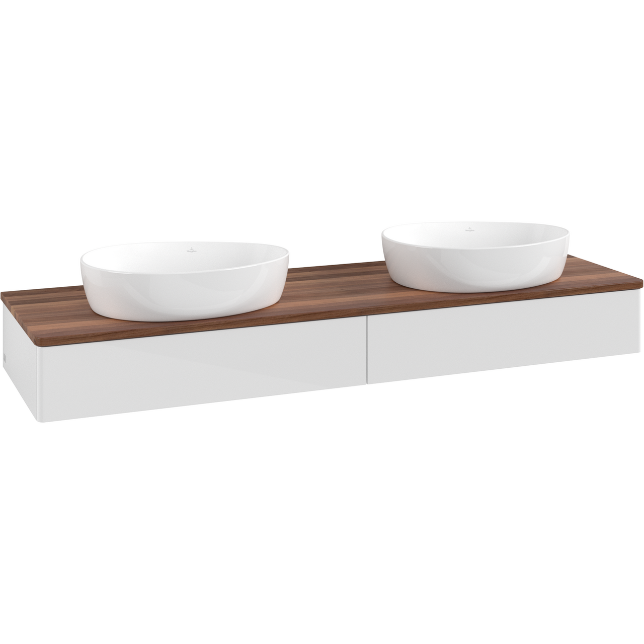V&b antao servantskap 2 skuffer glatt 1600x190x500 for 2 serv. u/kranhull m/lys hvit/valnøtt