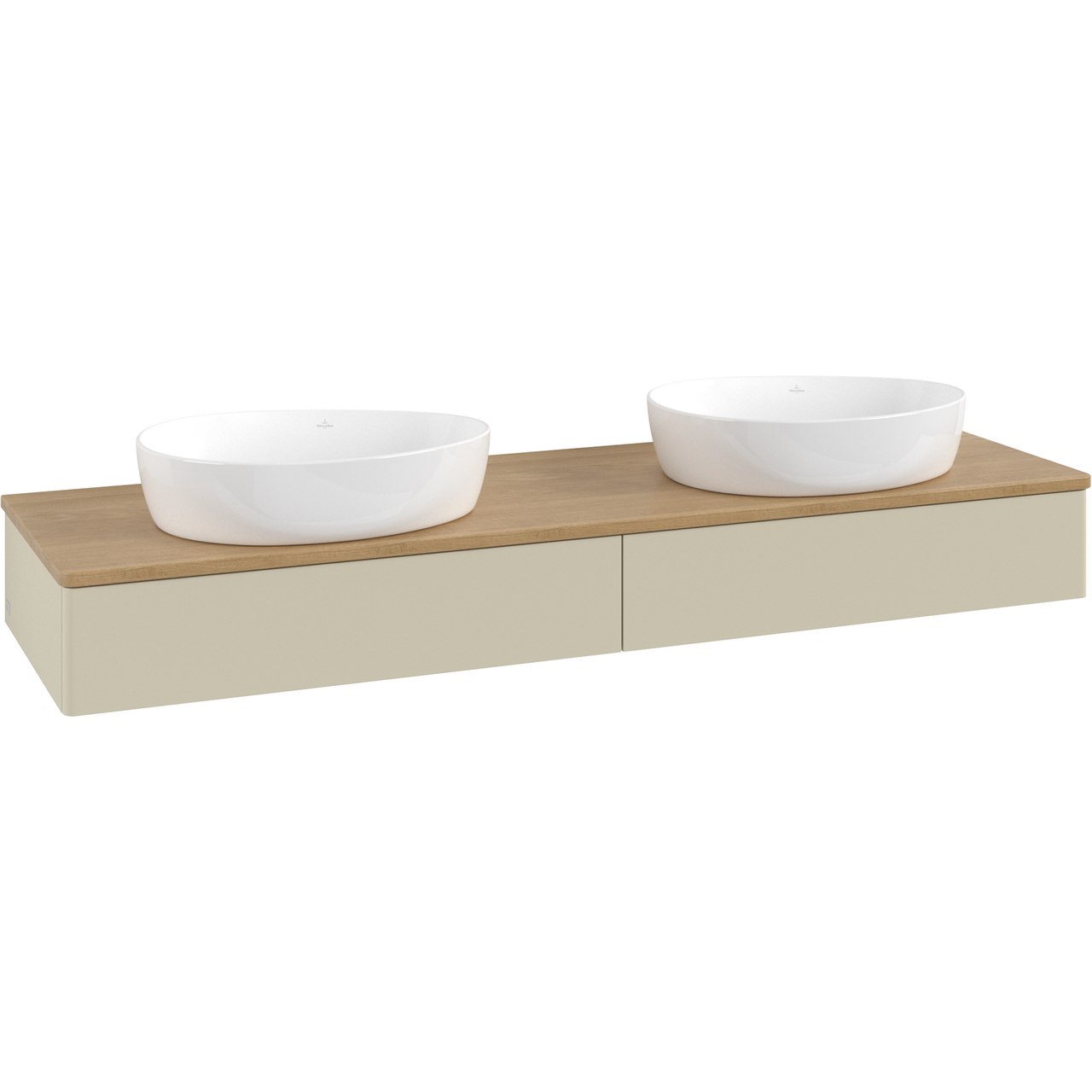 V&b antao servantskap 2 skuffer glatt 1600x190x500 for 2 serv. u/kranhull m/lys silkegrå/eik
