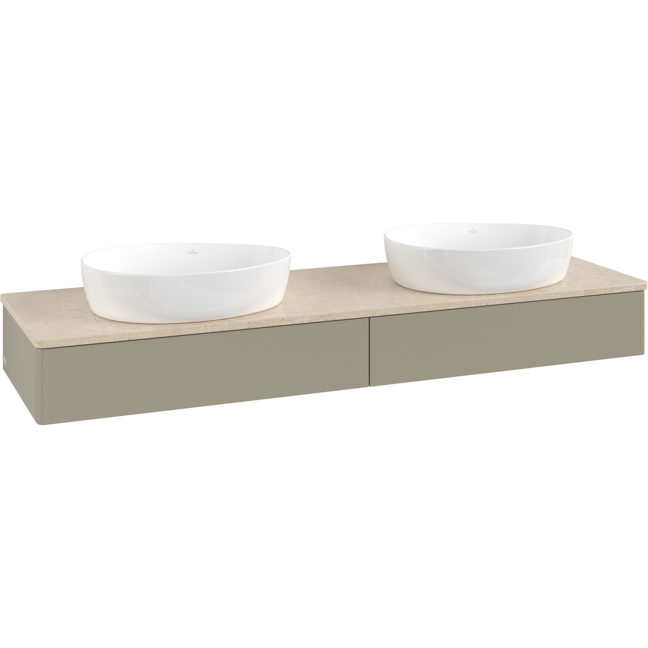 V&b antao servantskap 2 skuffer glatt 1600x190x500 for 2 serv. u/kranhull m/lys stengrå/créme
