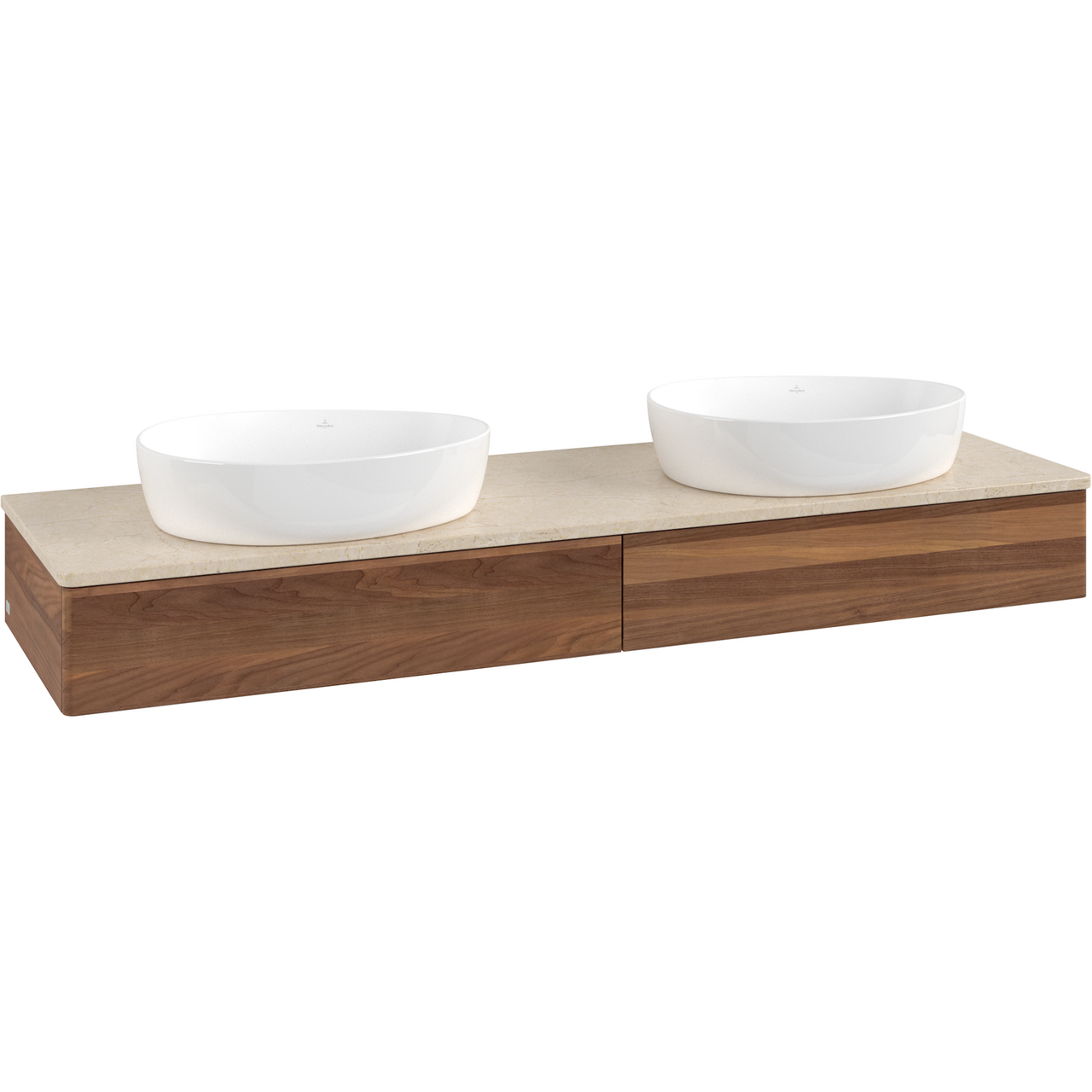 V&b antao servantskap 2 skuffer glatt 1600x190x500 for 2 serv. u/kranhull m/lys valnøtt/créme