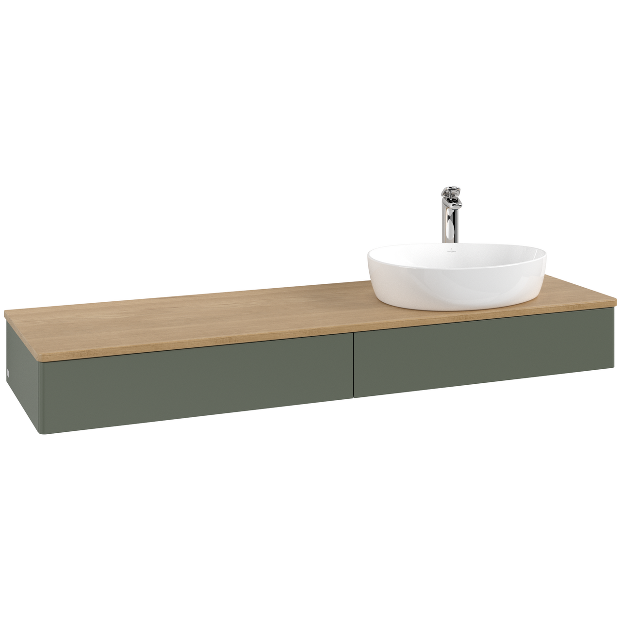 V&b antao servantskap 2 skuffer glatt 1600x190x500 høyre m/kranhull grønn/eik